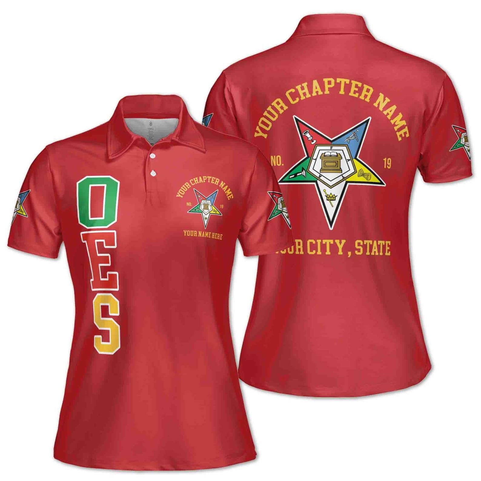 Women’s Personalized Polo Shirt – Eastern Star OES Pentagon Down AF&AM